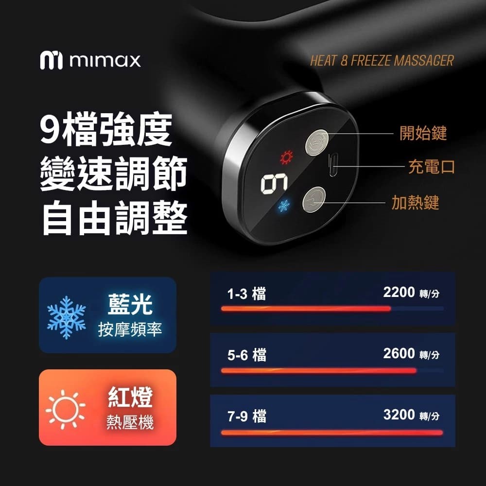 📌產品特色🔹可熱敷減少肌肉疲勞🔹可冰敷緩解局部充血🔹深層按摩緩解肌肉痠痛🔹9檔強度變速調節 可自由調整🔹強大的動力系統 高效率/低噪音/長壽命🔹升級大電池鋰電池